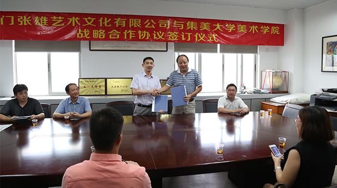 集美大學美術學院與張雄藝術文化有限公司強強聯合 張雄藝術網訊(文/魏婕)2015年9月21日,廈門張雄藝術文化有限公司與集美大學美術學院簽訂戰略合作協議,達成各個藝術領域